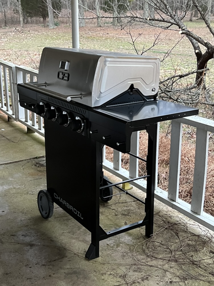 Busy day… Now we are sitting outside listening to the frogs, crickets and the birds. We have the new grill and cooking some steaks tonight.