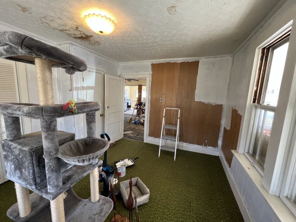 Mark worked on some flooring issues. Look at the wood floors underneath. We just did not have the energy to tackle that huge project.