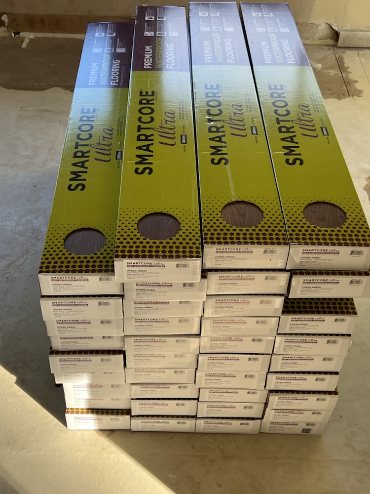 I loaded and loaded this flooring. 80 trips! I got my cardio in today. Someone had to do it as Mark was busy on other things.