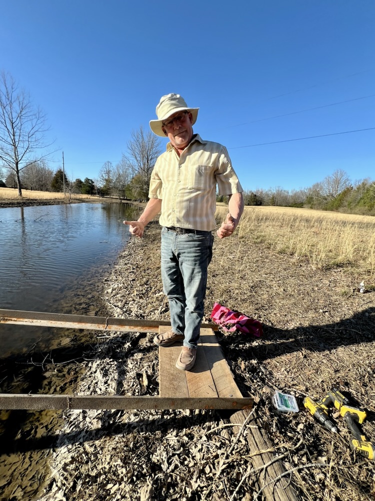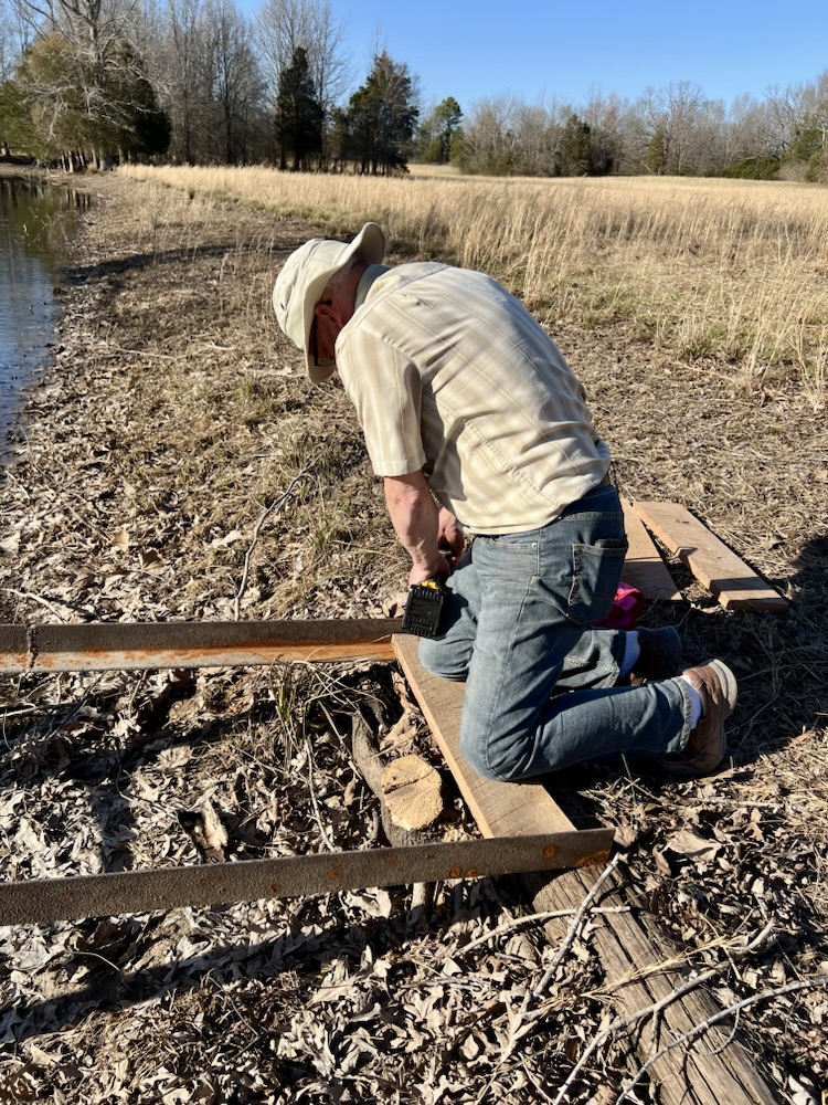 We worked on the bridge a little. Mark has found wood in our barn that we can use to make planks for the new bridge.