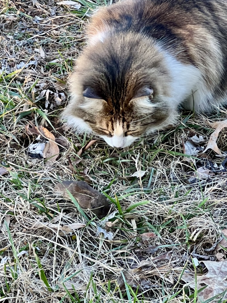 Now we are sitting outside, enjoying our beautiful weather, watching our cat chase and kill a mouse.