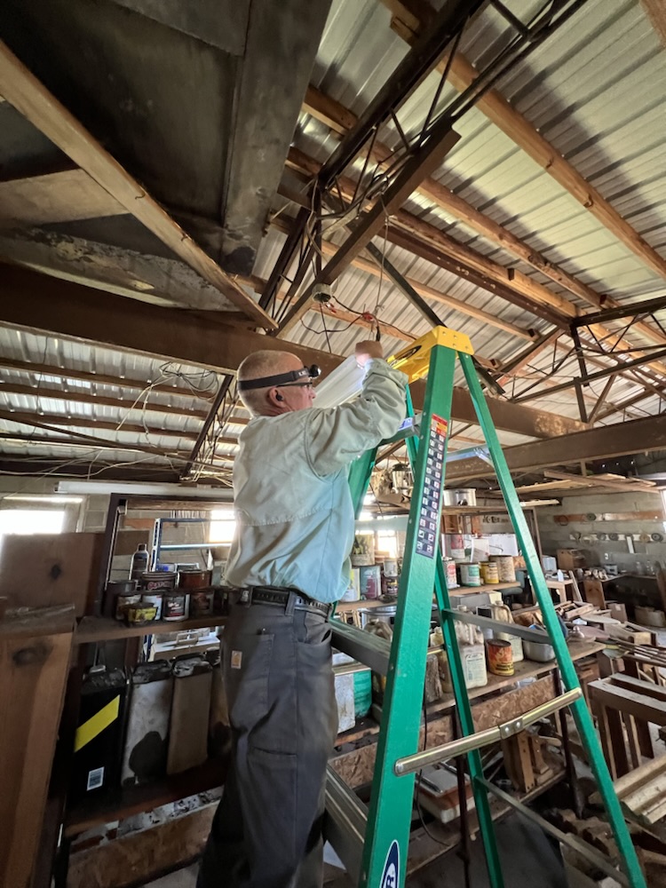 Mark has been busy working on the shop area the last couple days. He wants to get lighting and the electricity working properly.