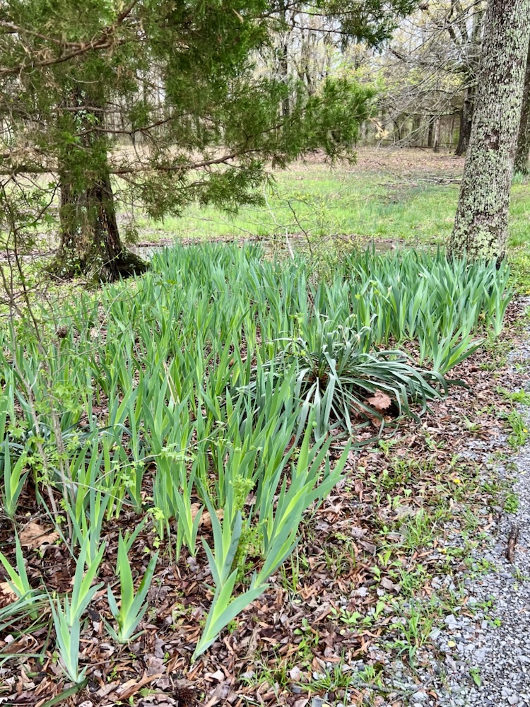 I took a walk to the mailbox today. Look at all of these irises that are coming up. I’m going to have a beautiful driveway if they all bloom.