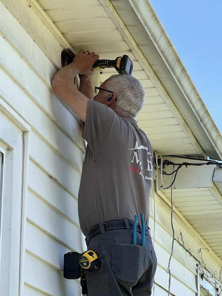 Once Mark got the hole cut out, nothing but there was a 2×4 that was not supposed to be there. So he had to do a little modification. The wood that is original in the house is hard as a rock!