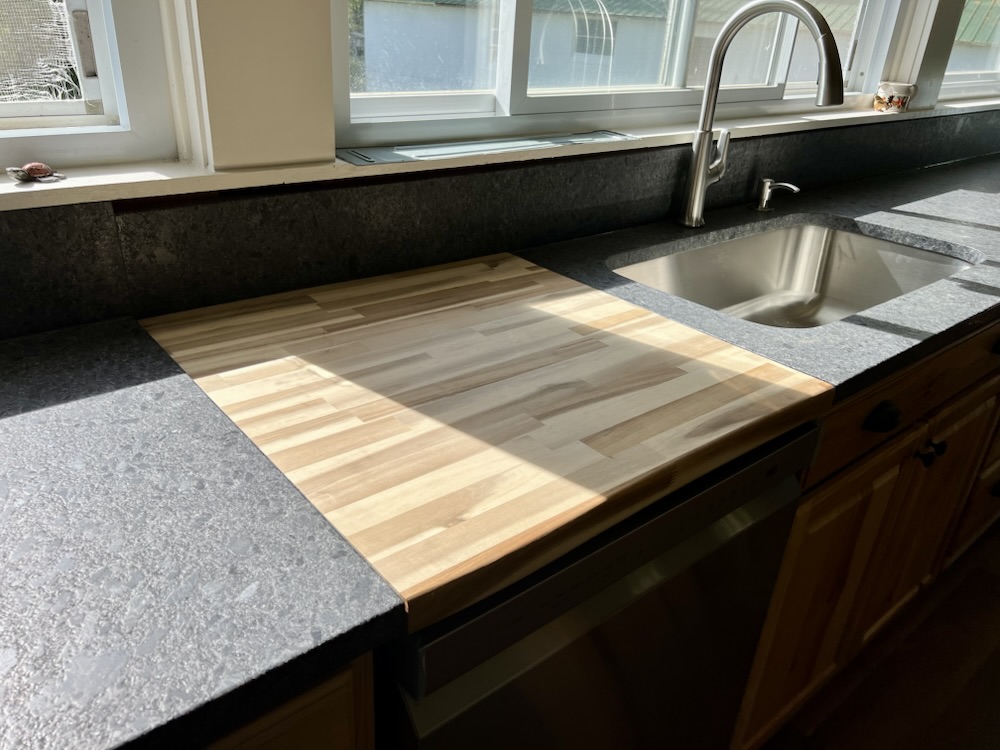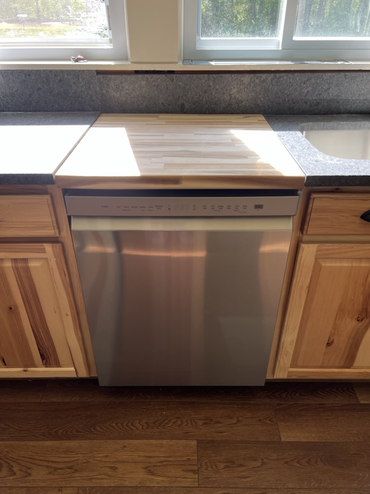 Mark has been a busy bee. He worked on the dishwasher installment and cutting board placement while was gone.