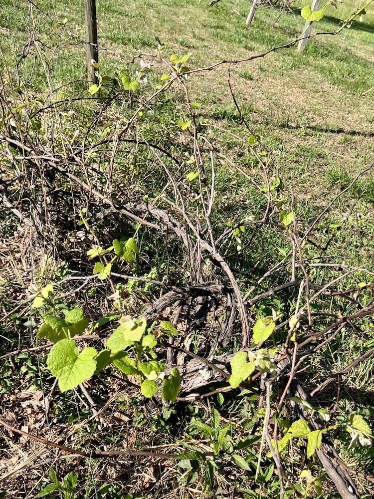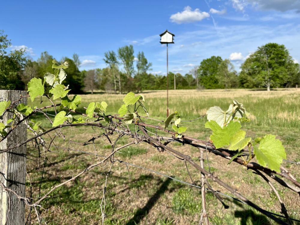We did not get our grape vines trimmed like we should have, but we have growth! Look closely as we have grapes!