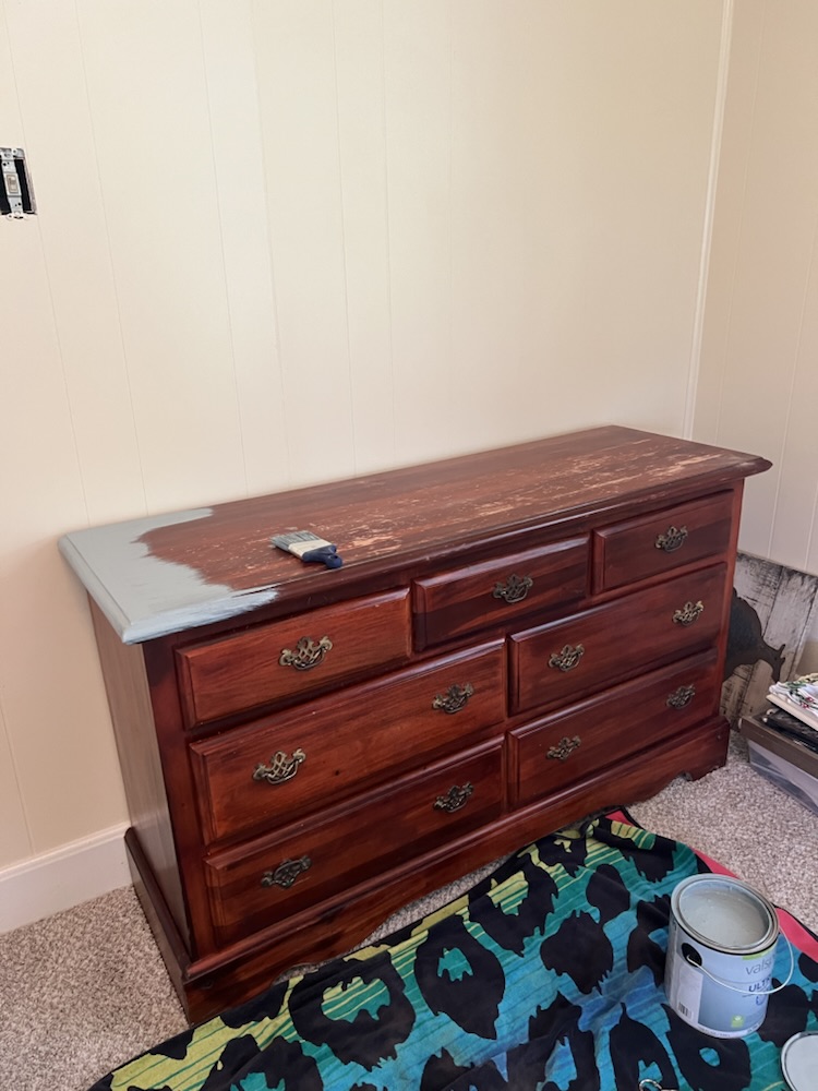 I have been lazy and the only thing I have to show is painting the top of the dresser.