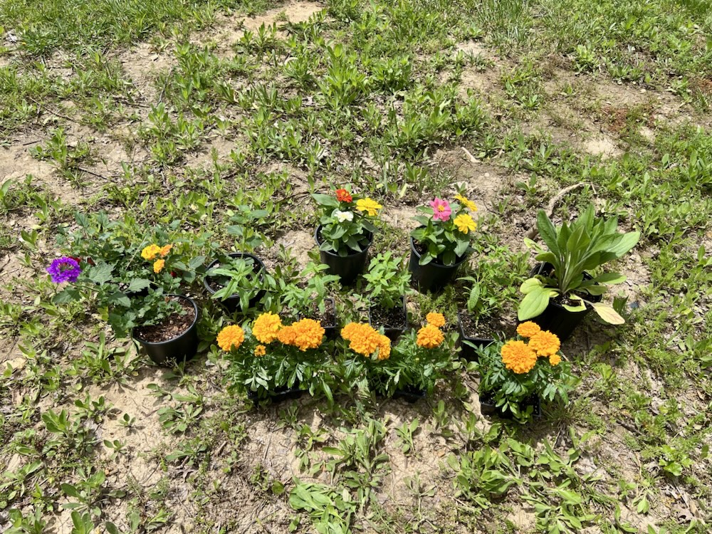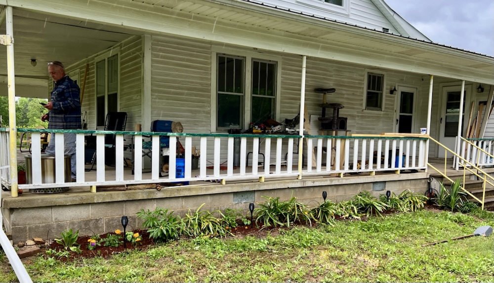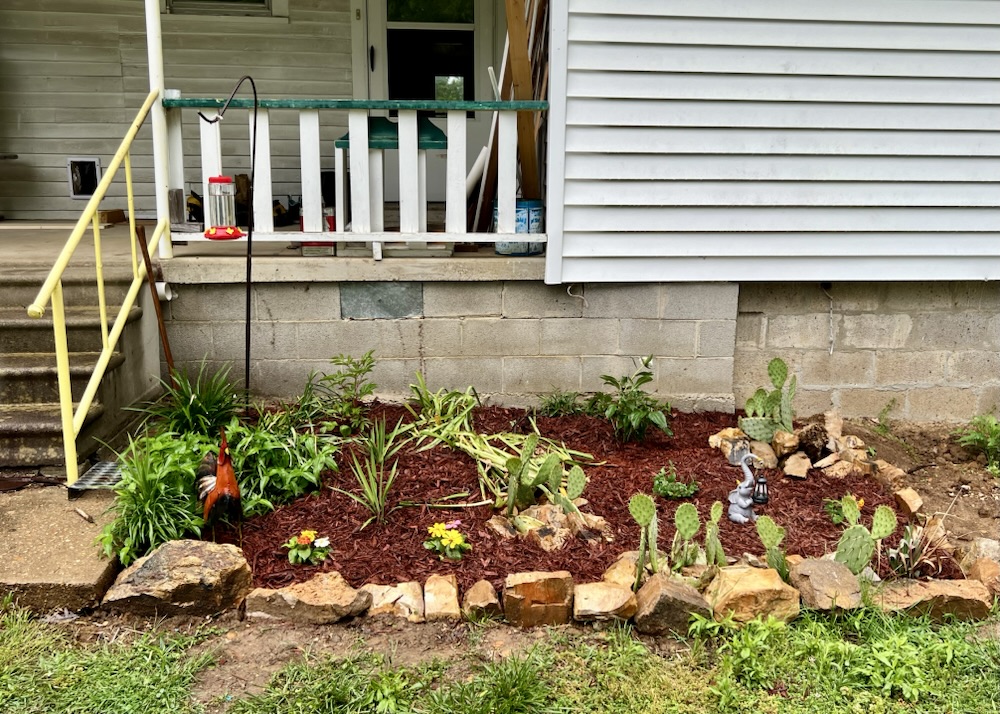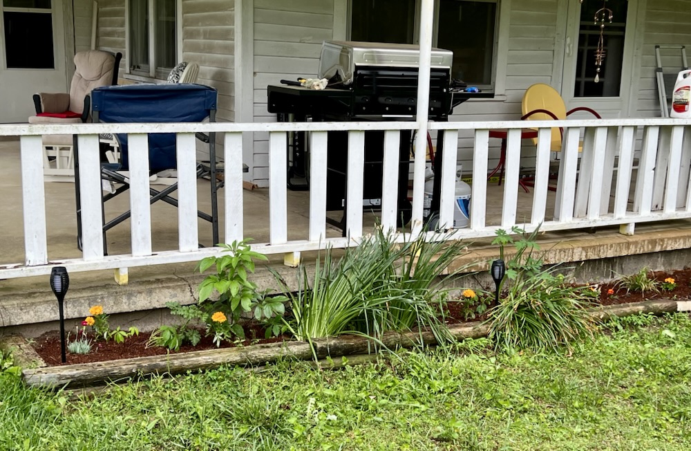 I decided to work on the flower beds around the porch. I found this awesome nursery that is only 4 miles from the house. The people are so sweet. The flowers in the picture below only cost me $40! Holy moly!