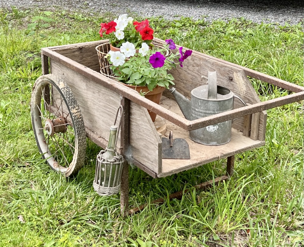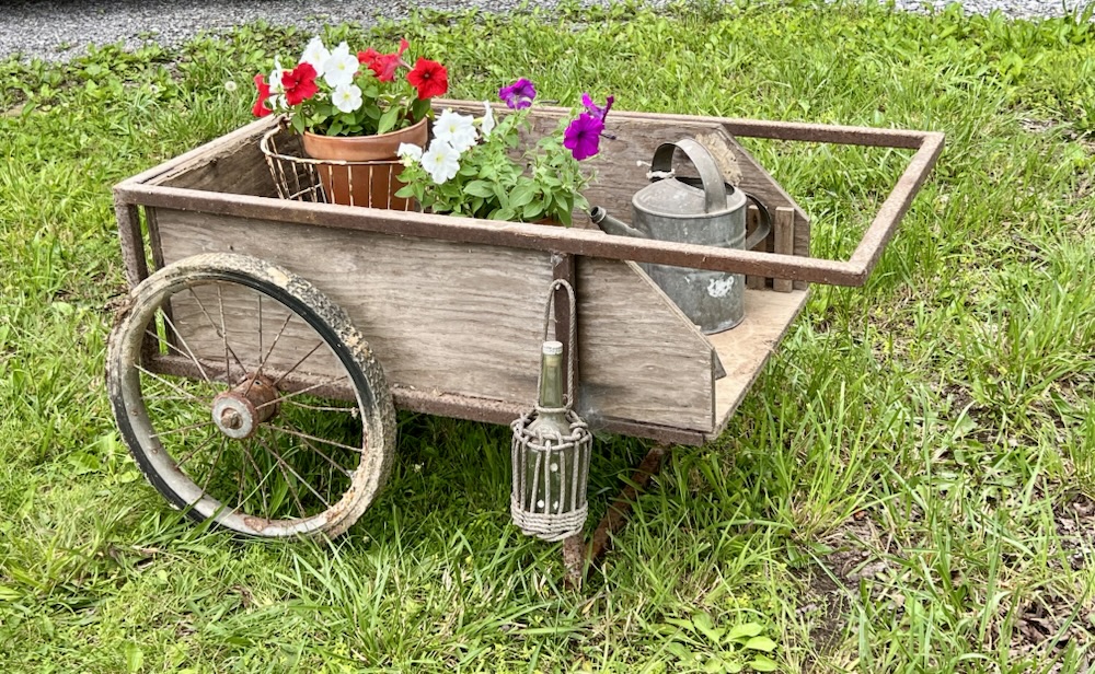 We found this cute cart in our shed. So we brought it out and put it in our little circle area of our driveway. οΏΌ