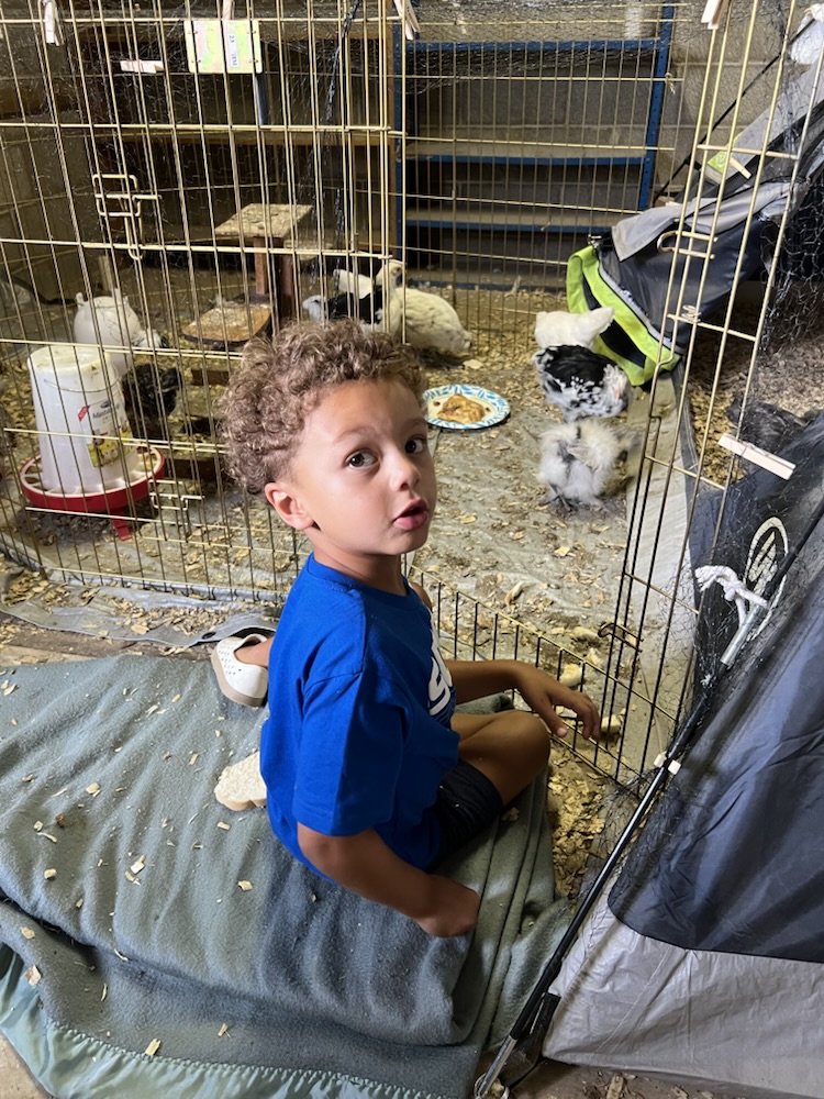 Camden enjoyed feeding the chickens.