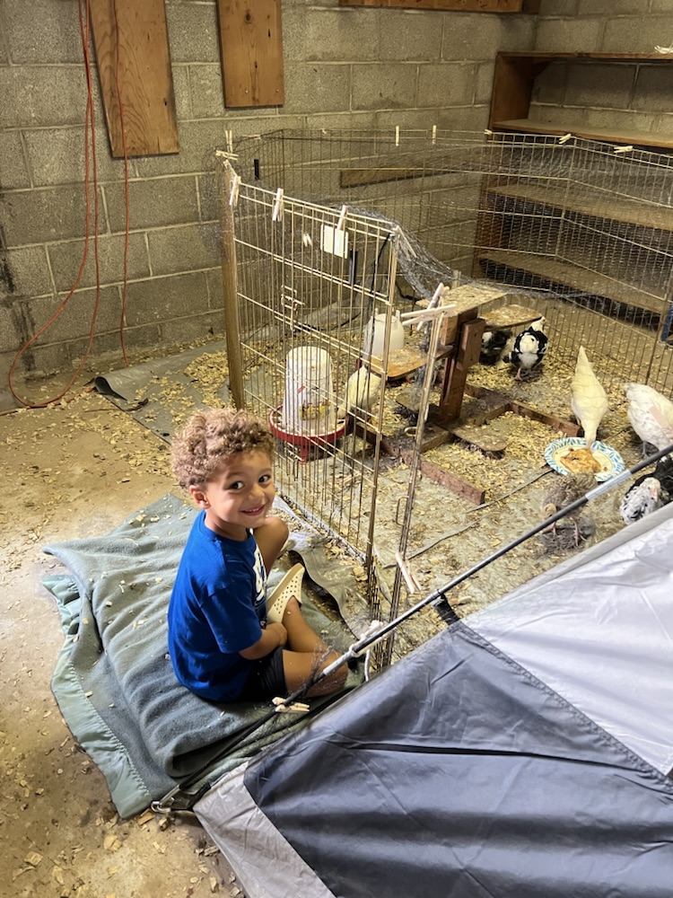 While he was here we picked up these sweeties. He was so proud that he got to hold the box in the truck all the way home. He was a good helper, getting the tent set up. These are guinea keets. They can eat hundred of ticks in one day. I can’t wait for them to get to work. 😂