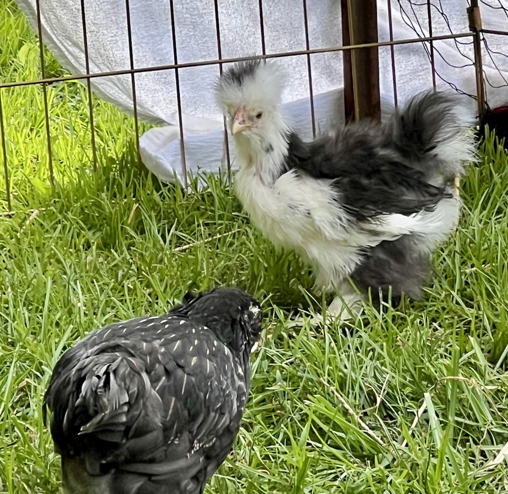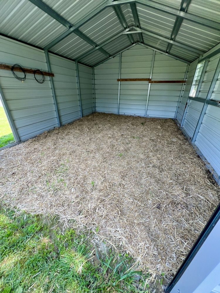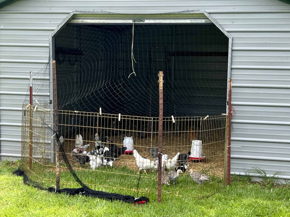 It was a big day for my flock. I moved them to their new temporary home until my coop arrives. They love the extra space, flirting around and digging through the straw.