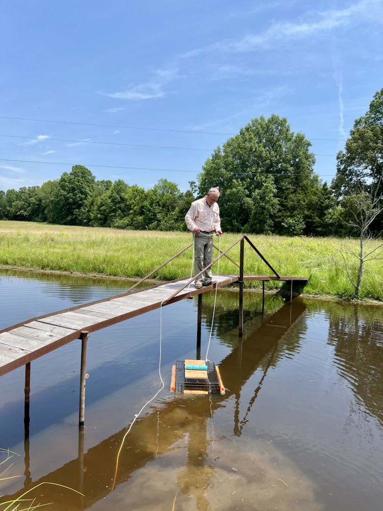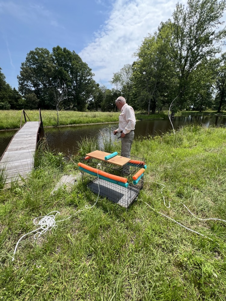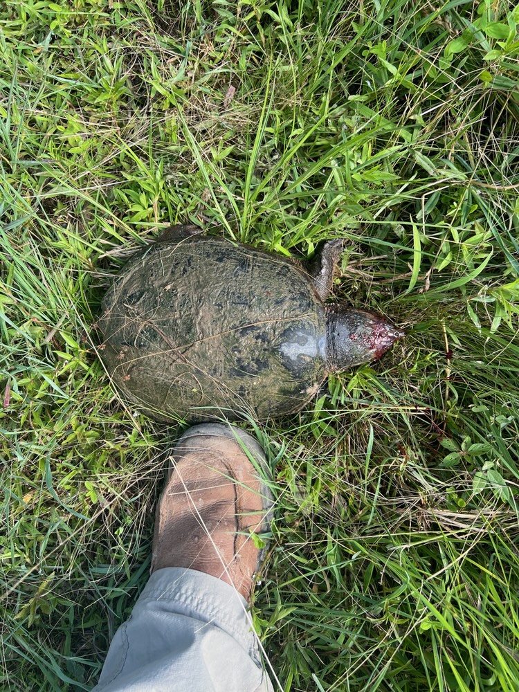 Mark is on a new mission. In order for fish to flourish in our ponds as well as ducks, we have to get the turtle population under control. We have snapping turtles and I think box turtles. The snapping ones will be eliminated. We will relocate the box turtles.