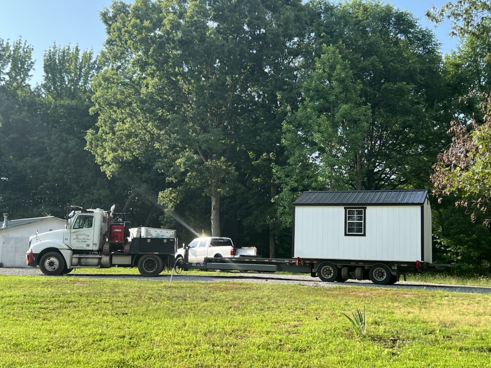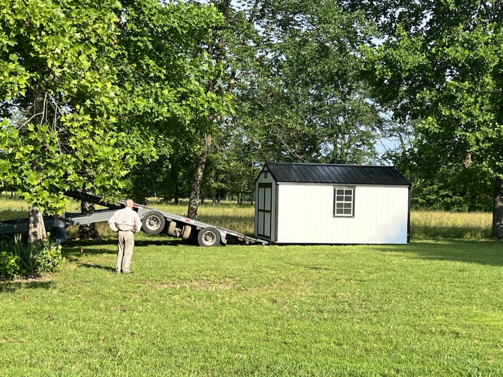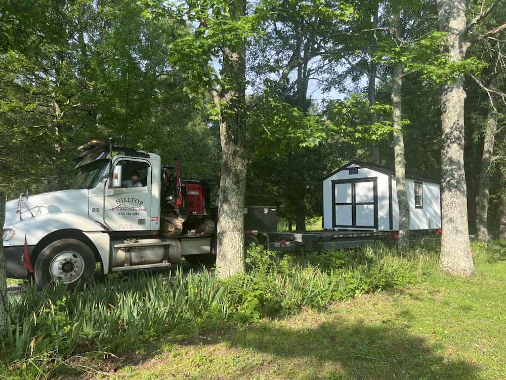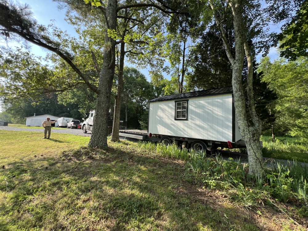 We had a great day today. My coop was delivered. We had to cut a few branches in order for the coop to fit in between our trees.
