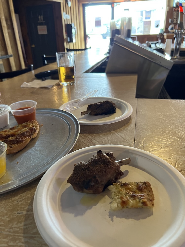 After all that work watching the shed getting delivered and leveled Mark and I decided to go into town. We had to go drop off our trash at the dump, pick up a few items at Walmart and decided to visit our favorite little bar called The Boardwalk. Normally we get their wings, but we decided to step out of our comfort zone and try their pig wings. Not too shabby!