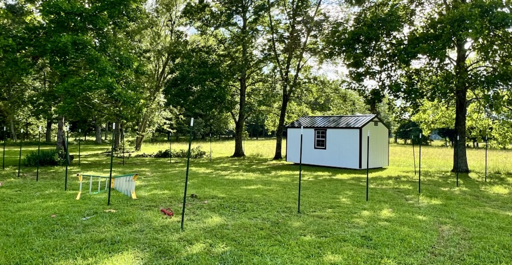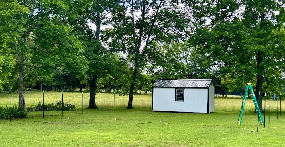 Today was a work day for me, I started putting in t-posts for my chicken run. I ran the first one by myself. Yup, it is crooked. So I enlisted Mark to bring his trusty level and help me out. So I plunged 18 t-posts two feet deep today. Thank goodness it was only in the high 80’s. But let me tell you, I was a wringing mess of sweat when it was all done. I am going to feel this work out tomorrow.