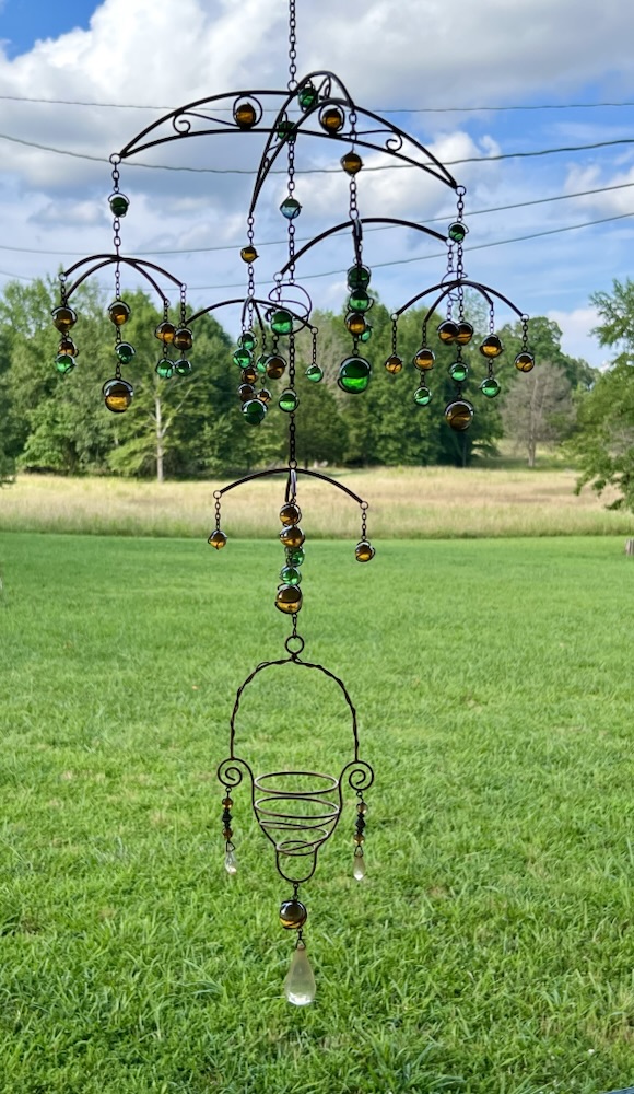 This cute hangy thing I got in Belfair at a senior citizen thrift store just off the island in Washington. I had to bring it with me. I am missing a couple orbs but I just love it. I paid a whopping five bucks for this gem.