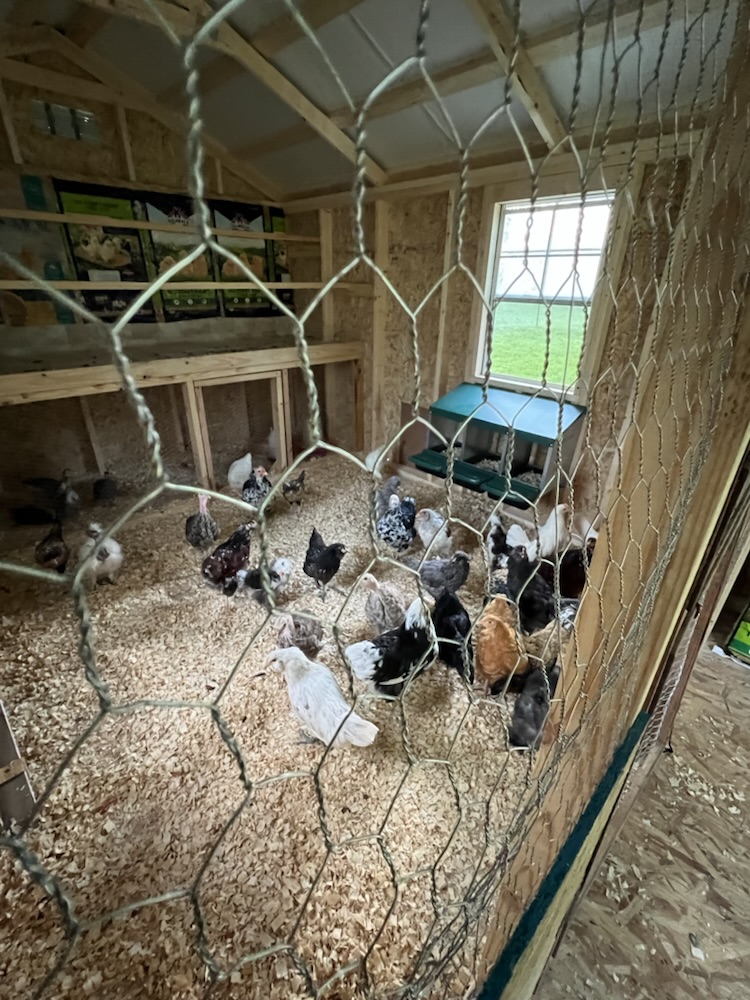 I should’ve taken a picture after I moved them all over to the chicken coop last night. I put them all on the roosting bar. They looked so darn cute. I was just too darn hot. I was ready to get in and take a nice cold shower.