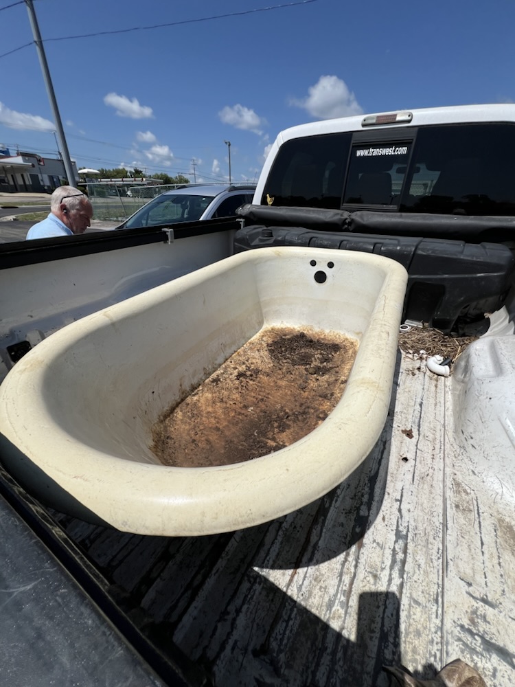 Today we went on a field trip but not to get chickens. I found this great cast-iron tub super cheap that I’m going to make a planter!