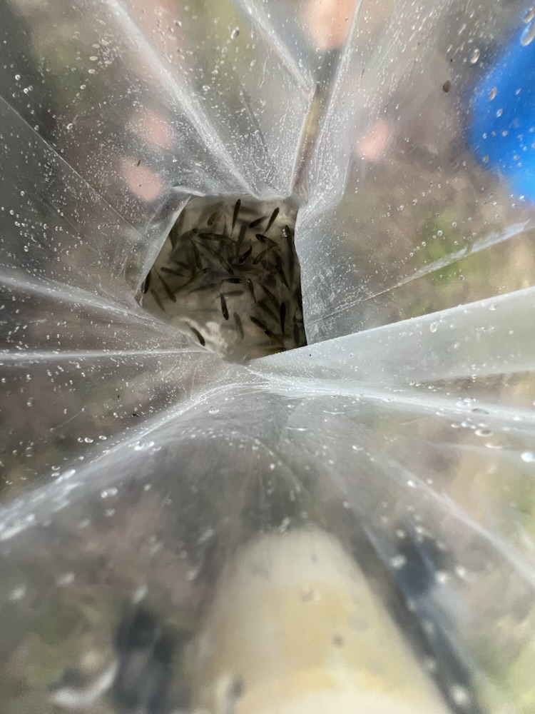 Yesterday we went to the Co-op and picked up our fish that we stocked our pond with. We got bluegill, bass, catfish and minnows.