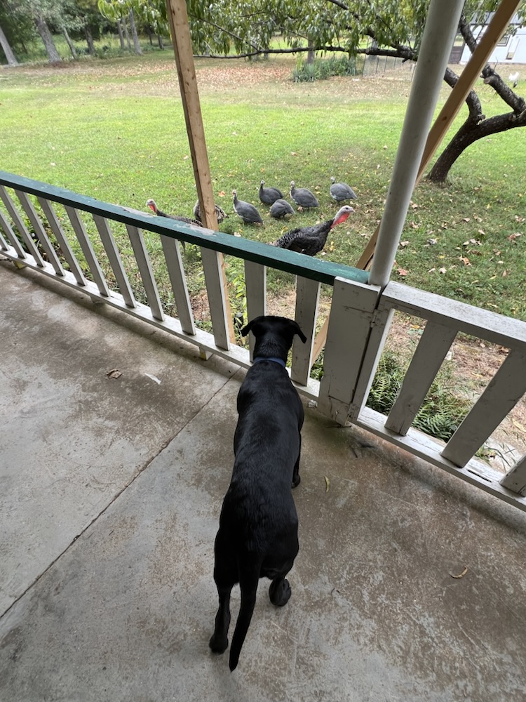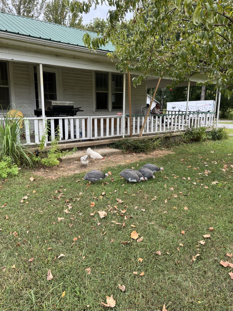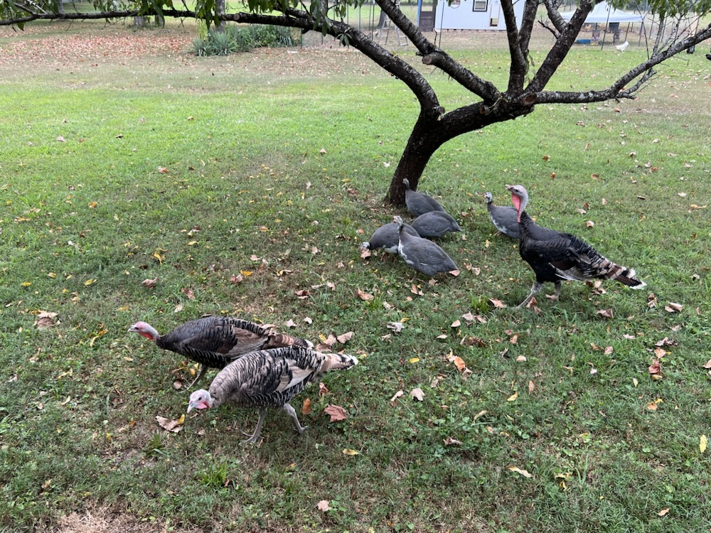 It was interesting watching what these birds were doing. Each day will get better and they will expand their ranging. The turkeys and guineas liked hanging out near the porch where I was sitting.