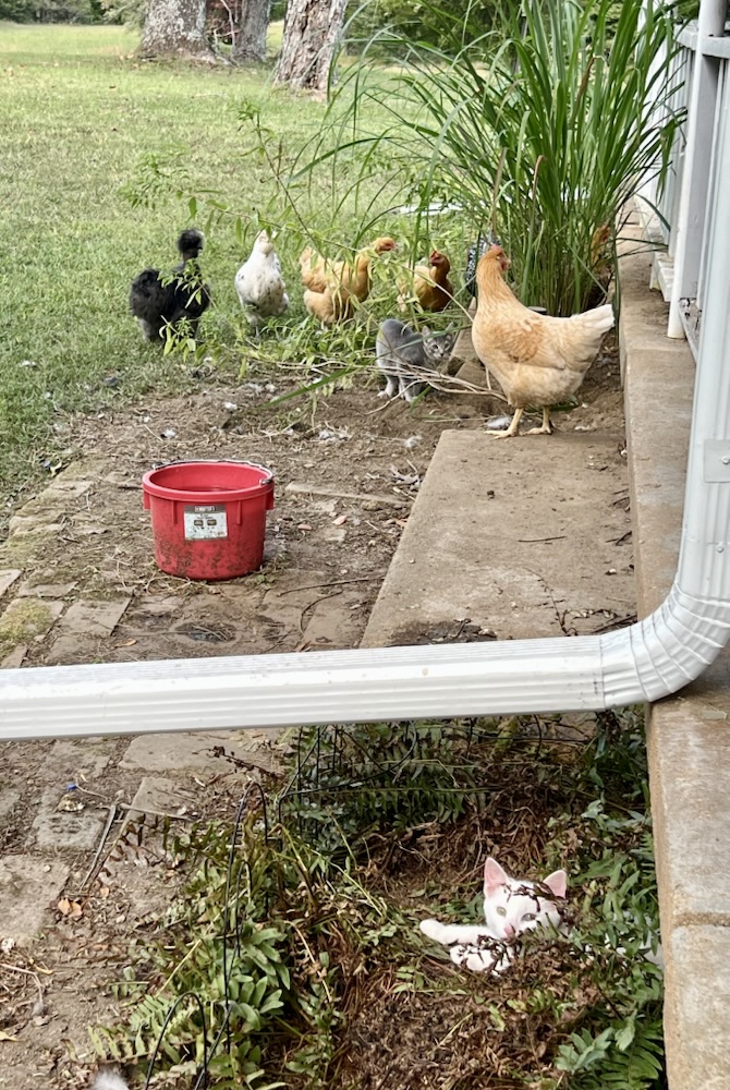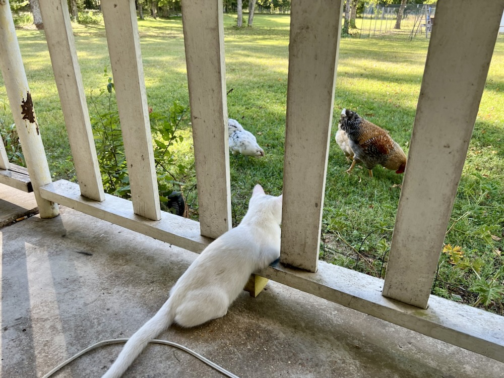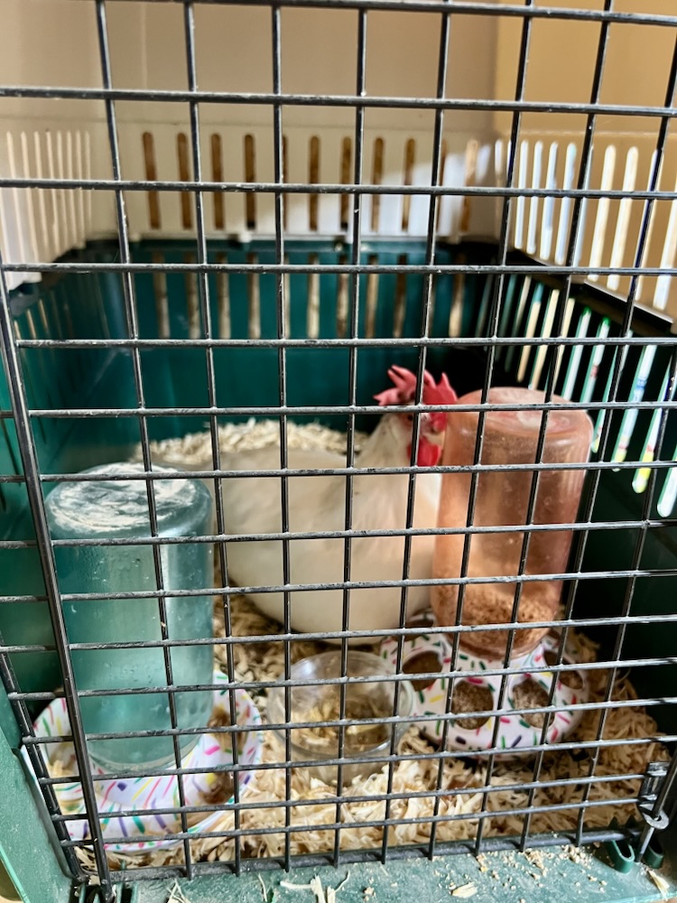 I moved my injured hen with the broken leg into the broody area so that she could have access to her fellow cluckers.