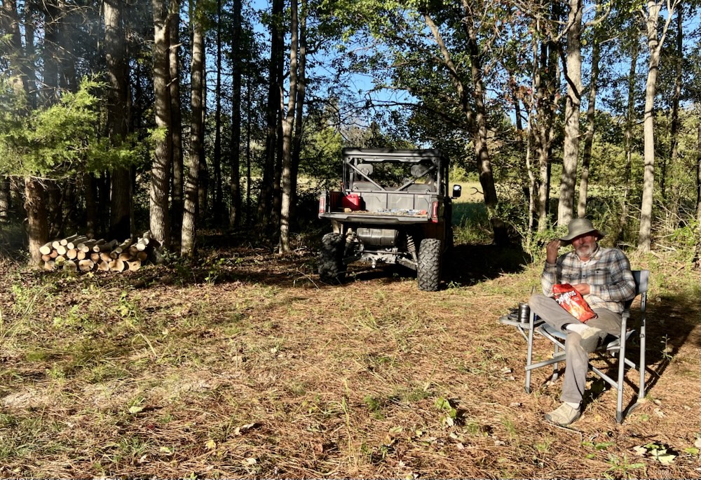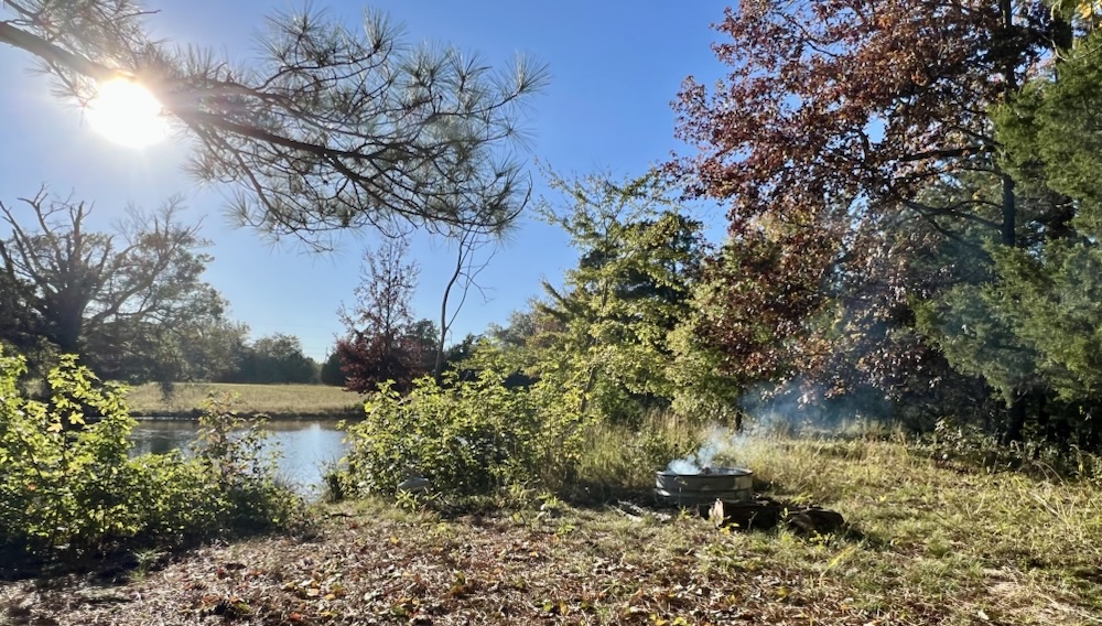Mark decided to enjoy the cooler weather and move a fire ring out by the pond and start cleaning up some of the wood on the ground.