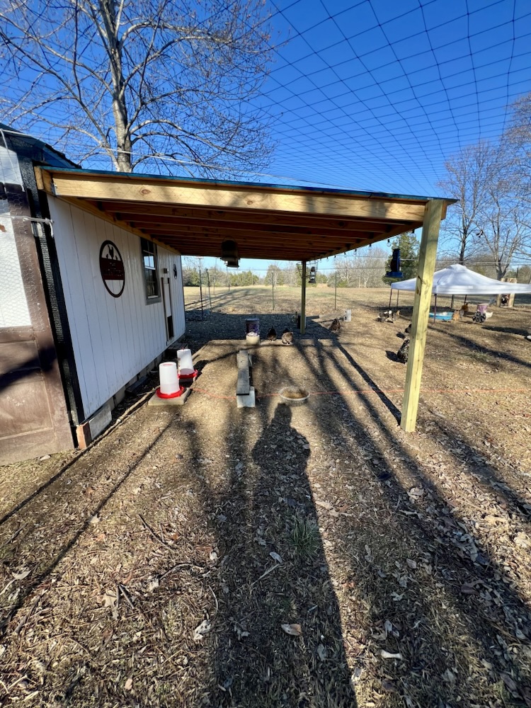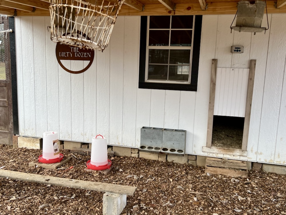 We have had a productive week. I purchased a yard of mulch to put in my chicken run. My next project is putting a gutter on my over hang to help with the water pooling.