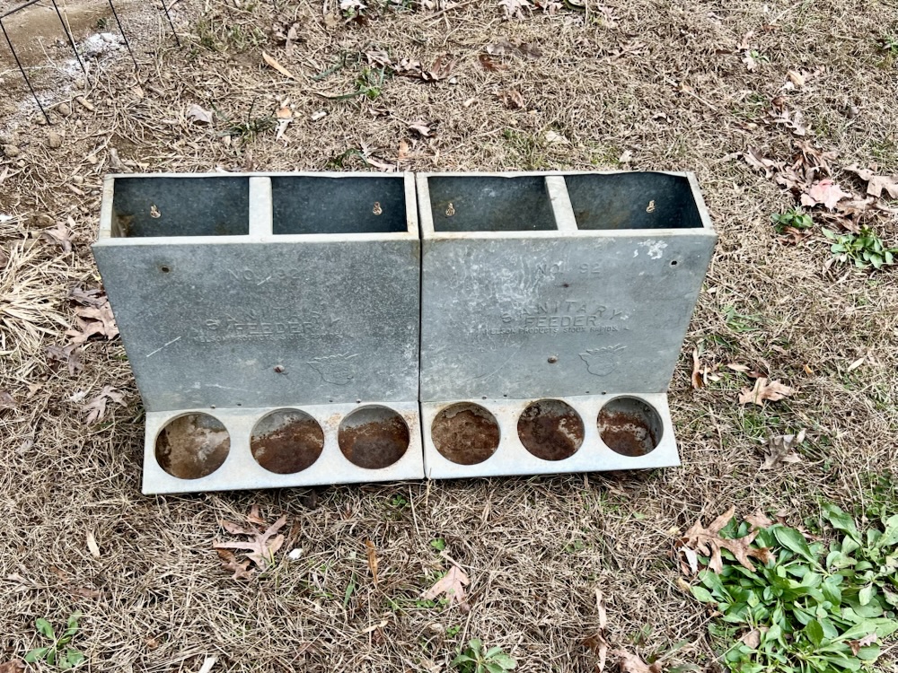When Kade and I were out walking, I was rummaging through the barn and found this fun chicken feeder.