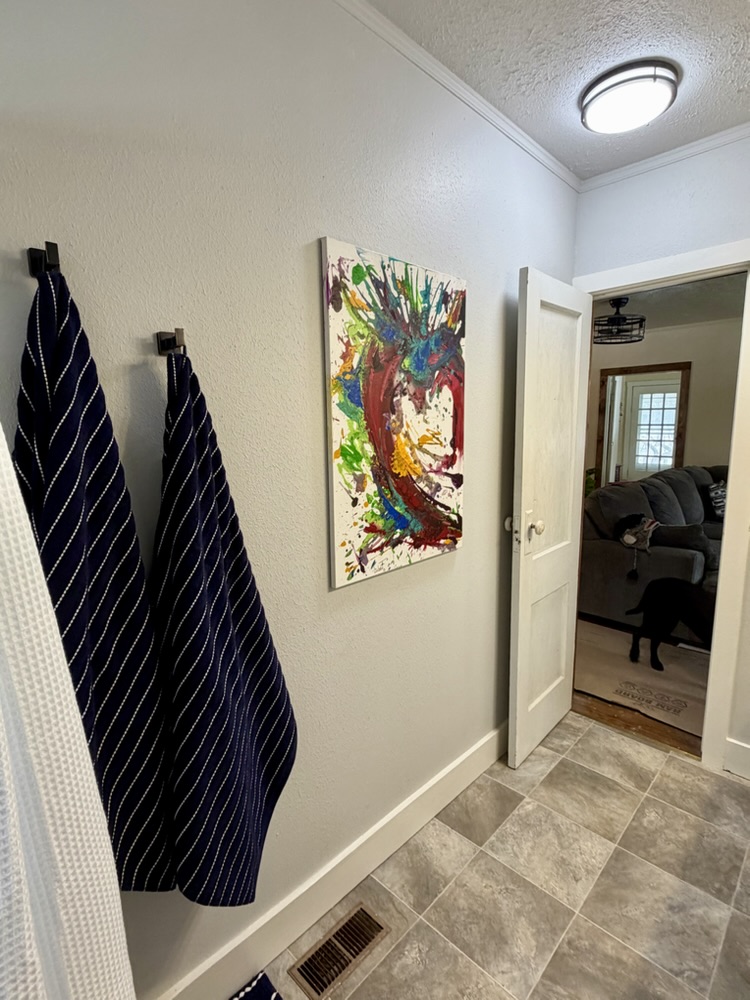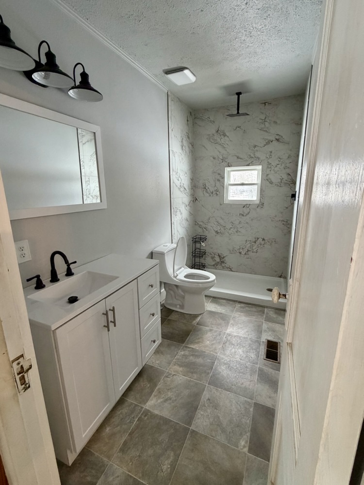 We came home to a finished bathroom. Still making some curtain changes and storage. But I love it!